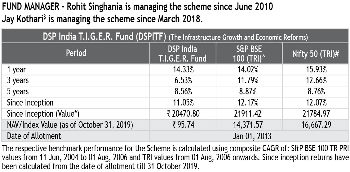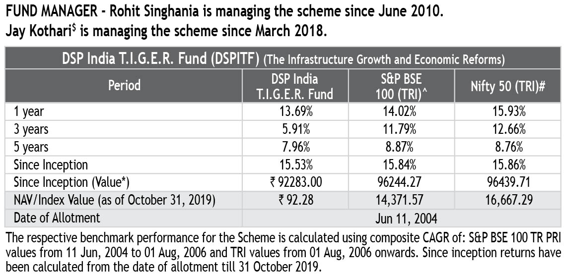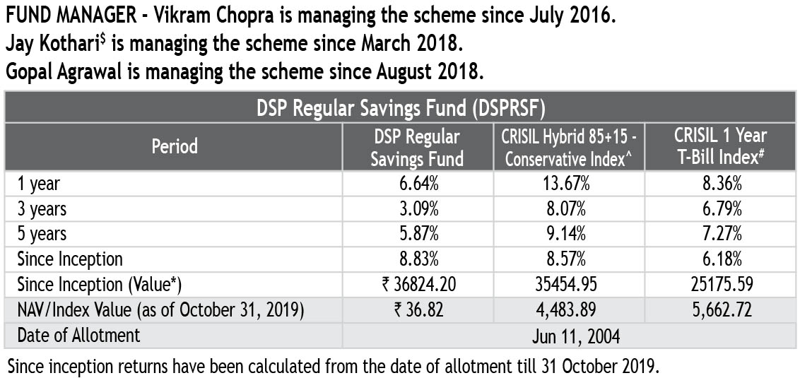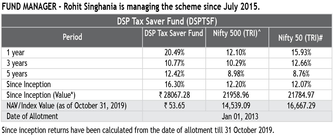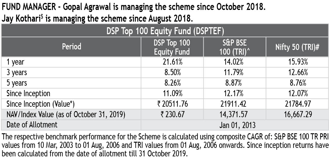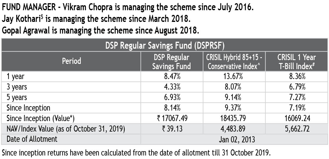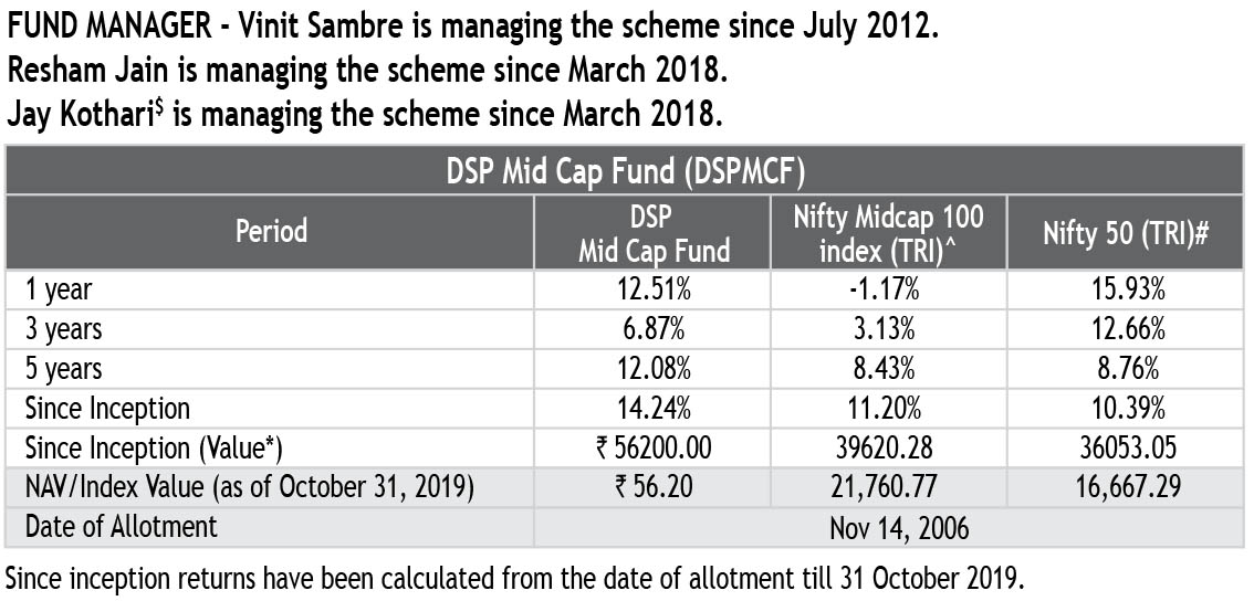 (b) ^Scheme Benchmark. #Standard Benchmark. *Based on investment of ₹ 10,000 made at inception. All data for Regular plan Growth option; Regular plan Dividend option for DSP Equity Fund, assuming reinvestment of dividend. Different plans shall have a different expense structure.