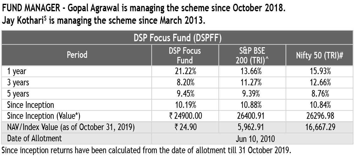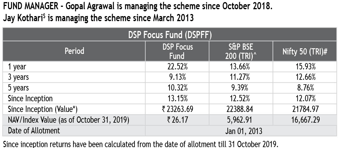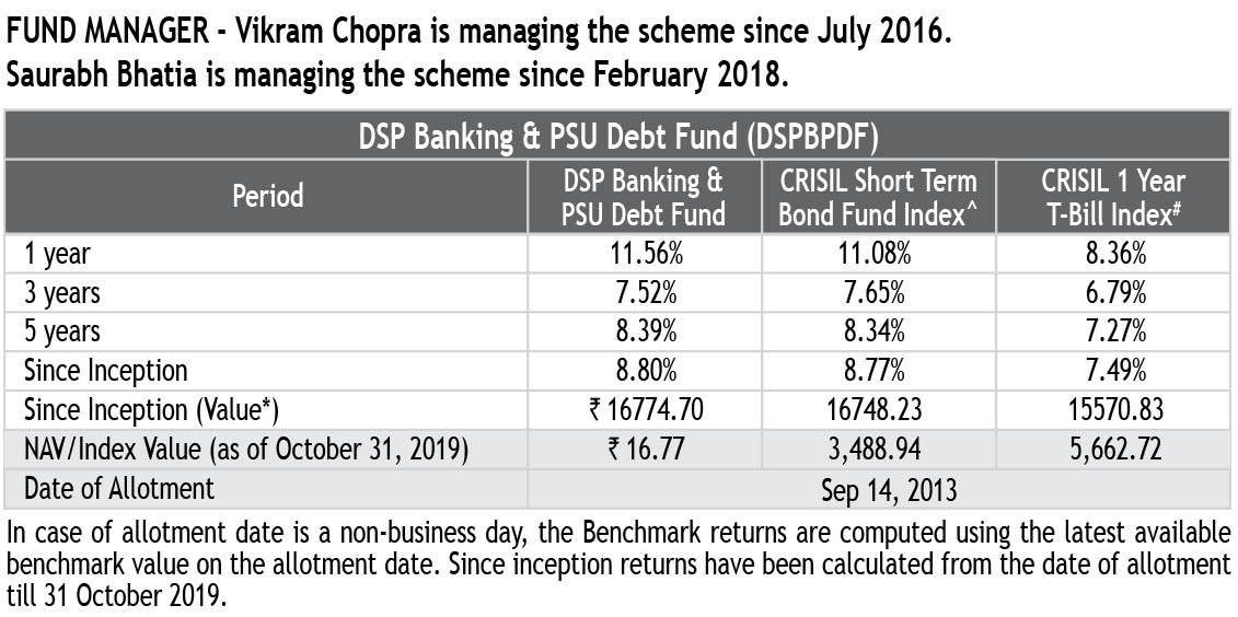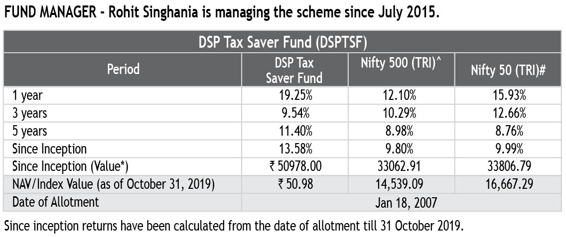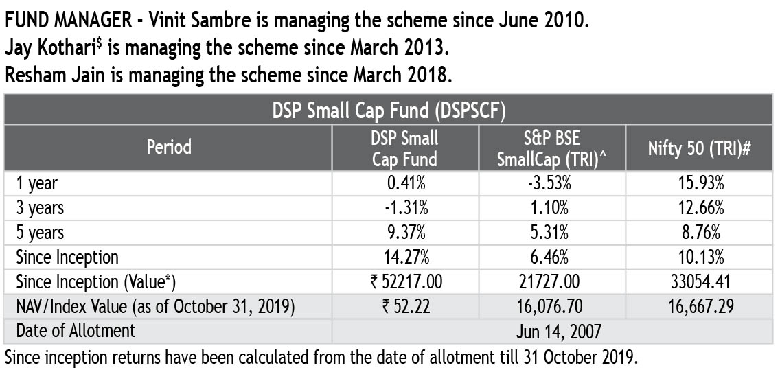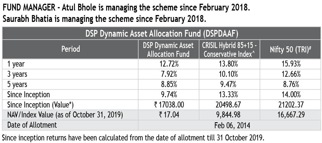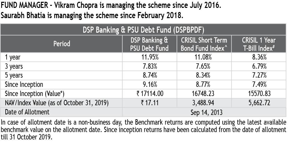 (b) ^Scheme Benchmark. #Standard Benchmark. *Based on investment of ₹ 10,000 made at inception. All data for Regular plan Growth option; Regular plan Dividend option for DSP Equity Fund, assuming reinvestment of dividend. Different plans shall have a different expense structure.