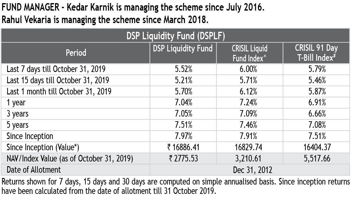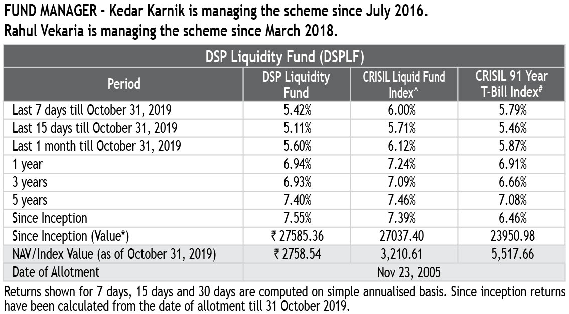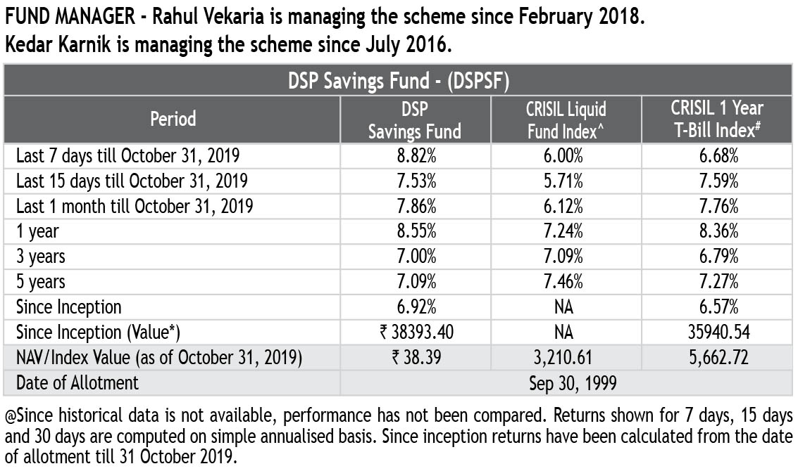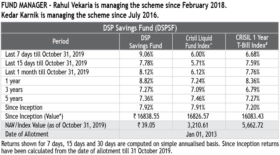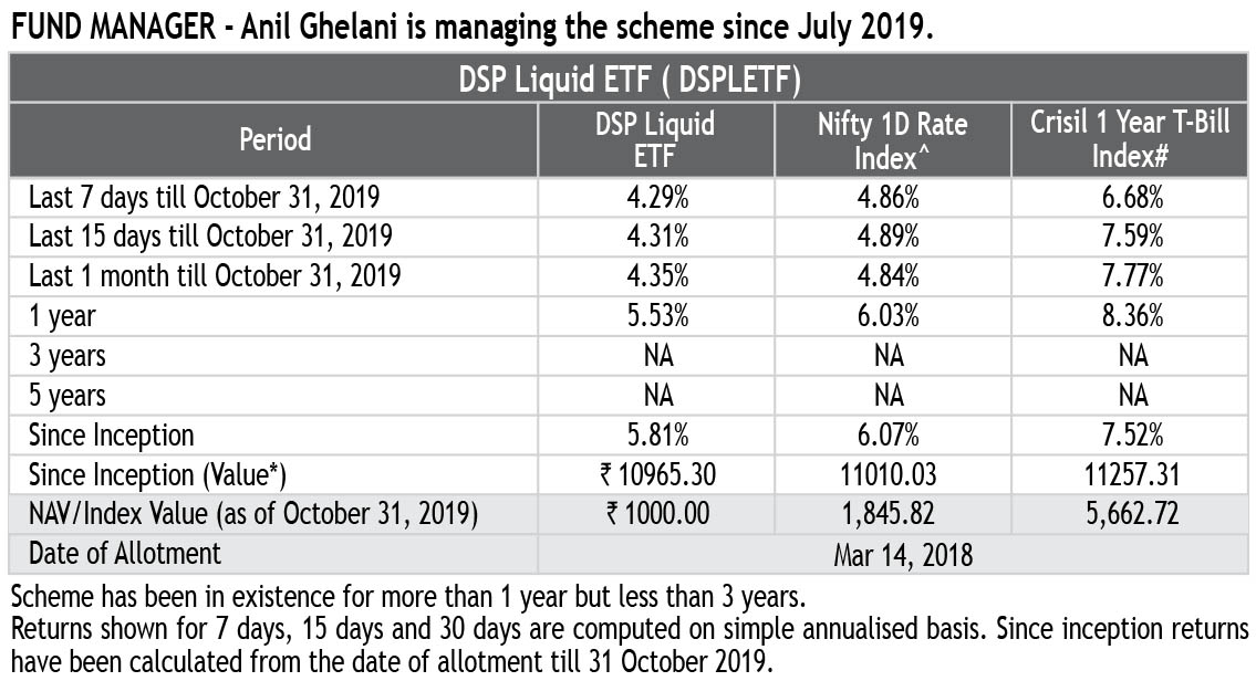 (h) DSP Overnight Fund has not completed 1 year hence performance data of the same is not provided.