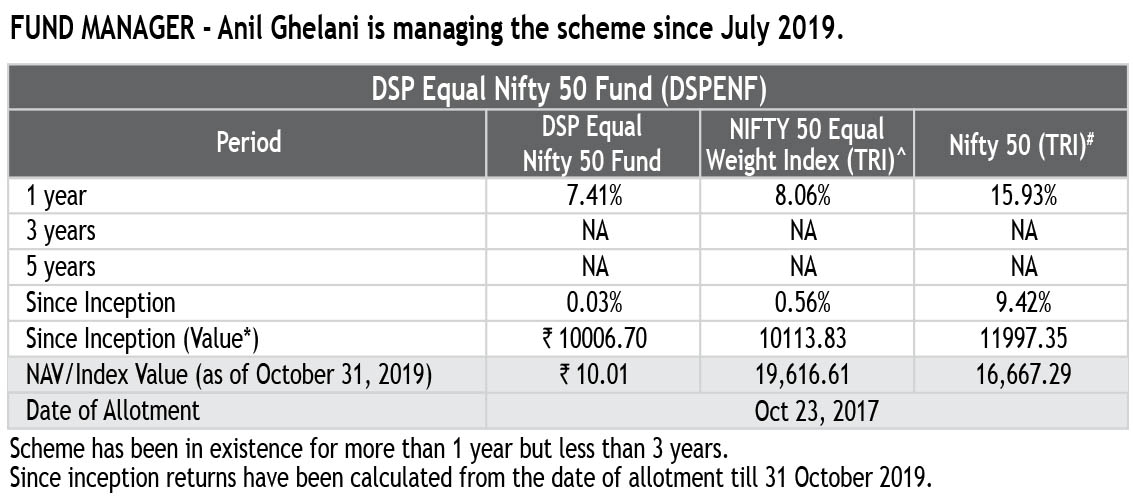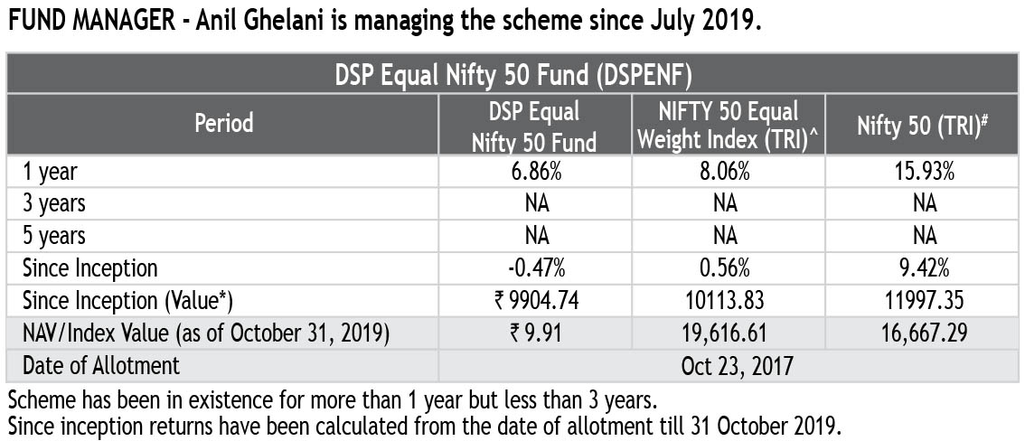 (j) DSP Nifty Next 50 Index Fund has not completed 1 year hence performance data of the same is not provided.