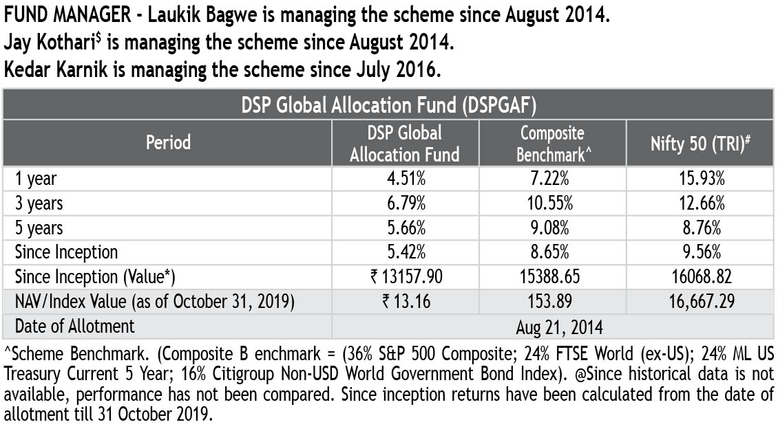 (k) DSP Quant Fund has not completed 1 year hence performance data of the same is not provided.