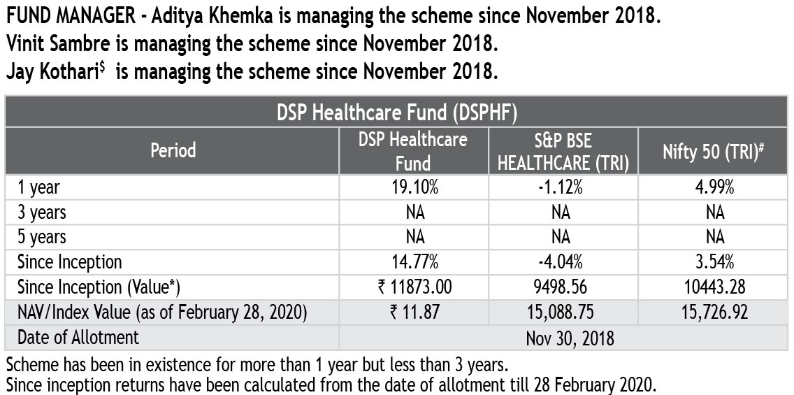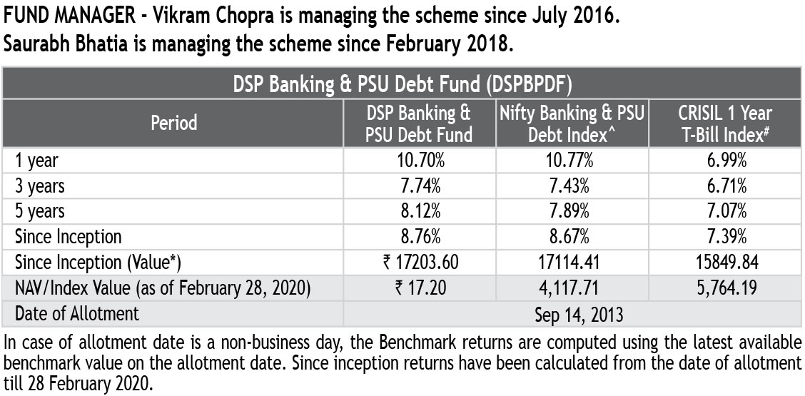 (b) ^Scheme Benchmark. #Standard Benchmark. *Based on investment of ₹ 10,000 made at inception. All data for Regular plan Growth option; Regular plan Dividend option for DSP Equity Fund, assuming reinvestment of dividend. Different plans shall have a different expense structure.