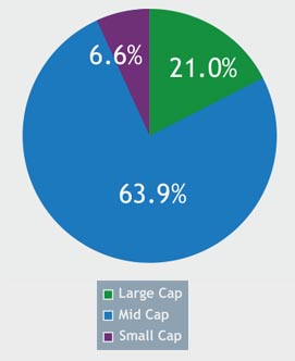 Notes: 1.Classification of % of holdings based on Market Capitalisation: Large-Cap 20.95%, Mid-Cap 63.89%,