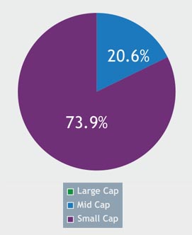 Classification of % of holdings based on Market Capitalisation: Mid Cap 20.58%, Small-Cap 73.87%.
